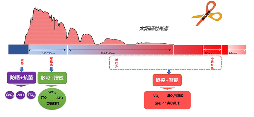 紫外阻隔,可見光.高透過,可根據溫度調節紅外透過 |