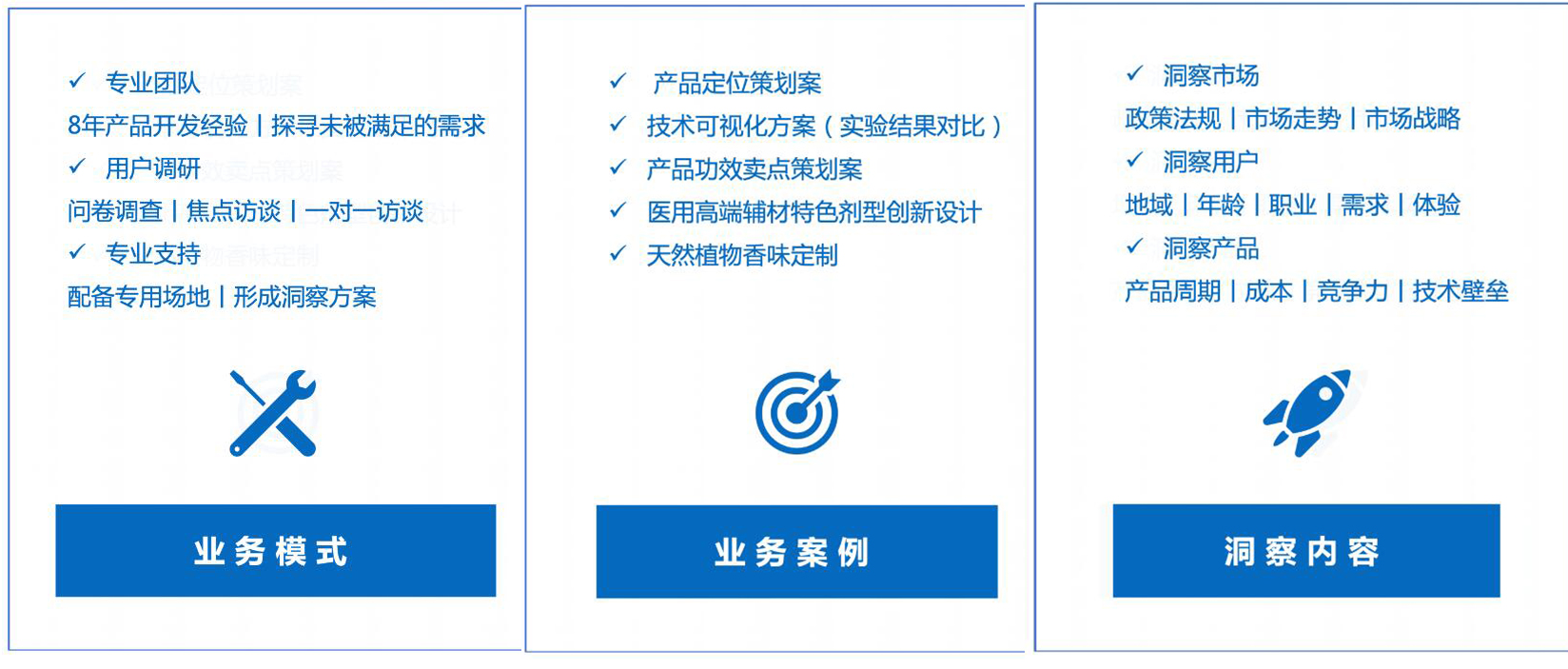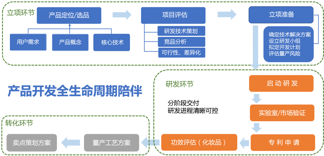 為創新價值鏈客戶提供化妝品完整產品開發的科學技術服務及產品解決方案。換言之,解決化妝品生產中最難的部分,產品開發。