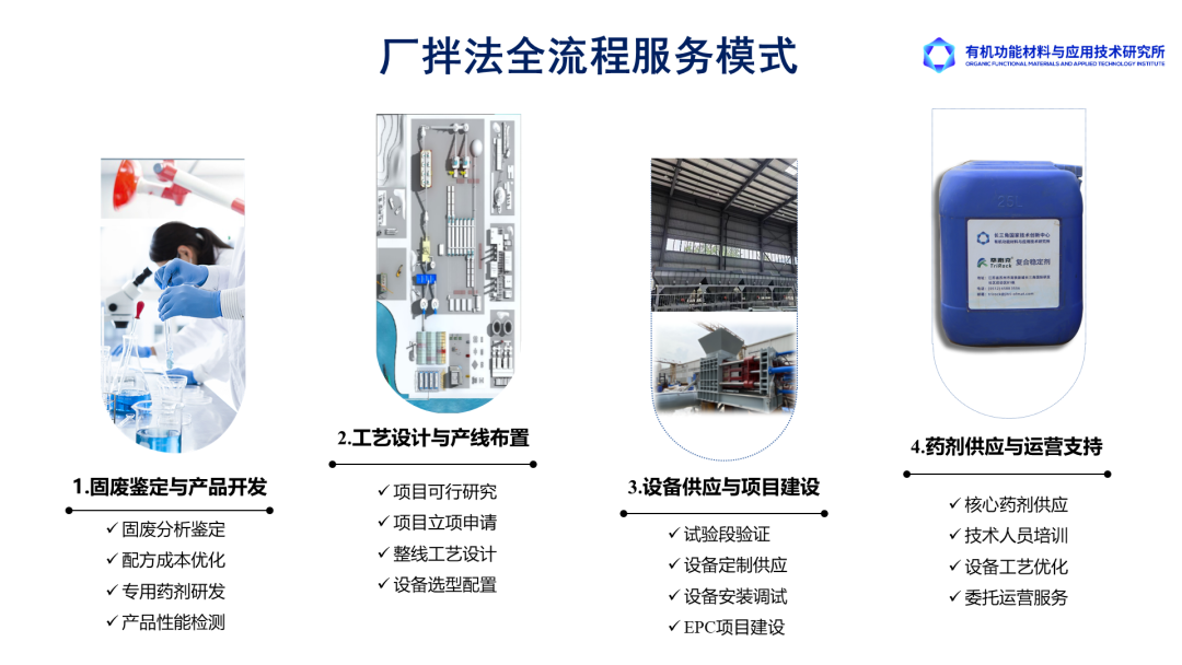 長三角國創中心功能材料所環保中心前瞻性地聚焦固廢處理問題和道路建設問題,經過長期的研究,形成了針對于各類淤泥質固廢、城市固廢、工業固廢道路應用的綜合解決方案——集“關鍵藥劑+成套裝備+核心技術”三位一體的一站式服務。