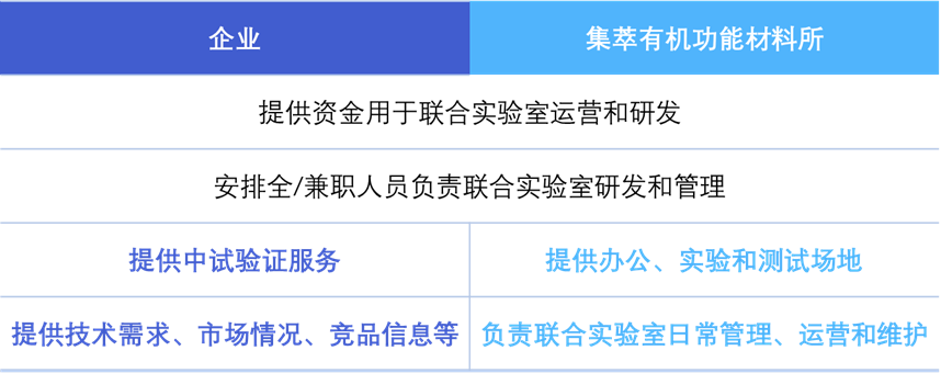 基于“共同投資、共建團隊、共同立項、共享收益”的原則,集萃有機功能材料所與企業共同建立聯合實驗室,優先滿足企業自身需要解決的技術需求,圍繞尚未成熟的技術或新技術共同立項。