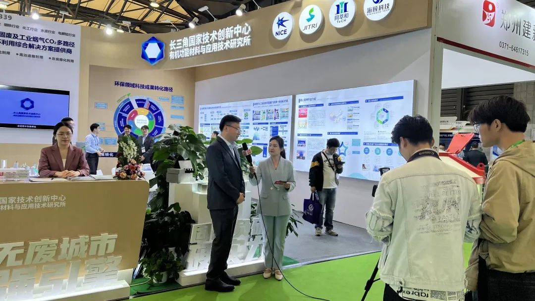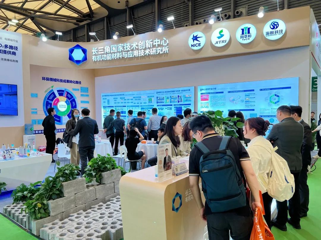 參展期間,長三角國創中心功能材料所展示了最新科技成果——“大宗固廢無害化與高值高效資源化利用綜合解決方案”、“高碳排行業二氧化碳協同固廢礦化利用一體化解決方案”。